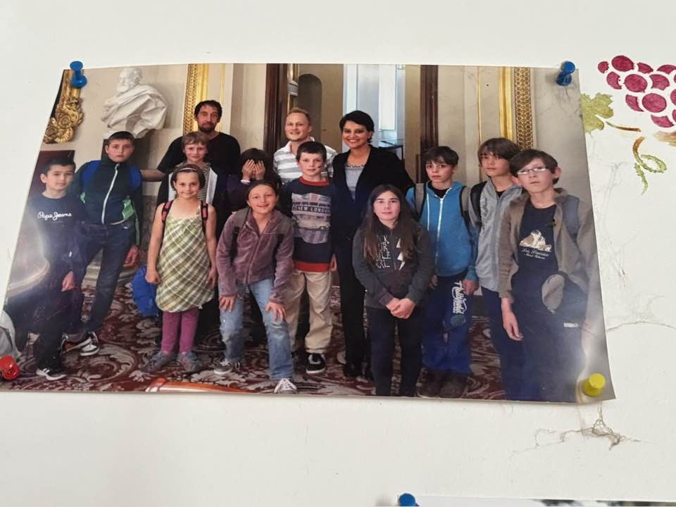 Sur un mur, une photo avec une de nos anciennes ministres de l’éducation Najat Vallaud Belkacem, à qui j’ai envoyé en souvenir la photo.
