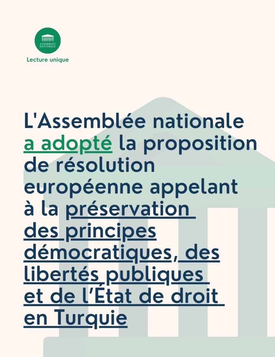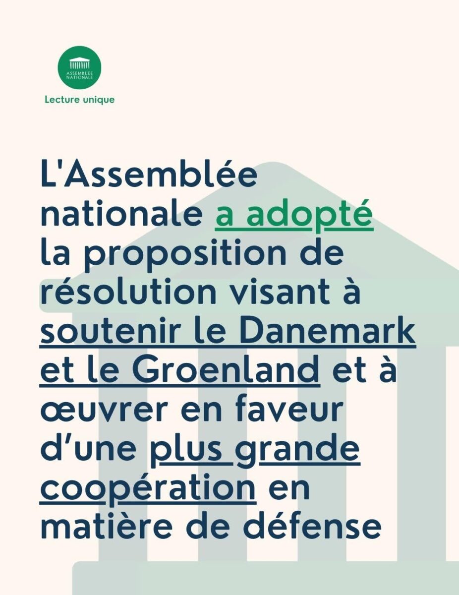 Les débats ont également porté sur plusieurs textes à dimension internationale. L’Assemblée s’est prononcée en faveur d’un soutien aux Arméniens, dans un contexte régional toujours fragile, ainsi qu’en soutien au Groenland, au regard des enjeux géopolitiques croissants dans l’Arctique. Une résolution appelant au respect de l’État de droit en Turquie a par ailleurs été examinée, rappelant l’attachement constant de la représentation nationale aux principes démocratiques et aux libertés fondamentales.
