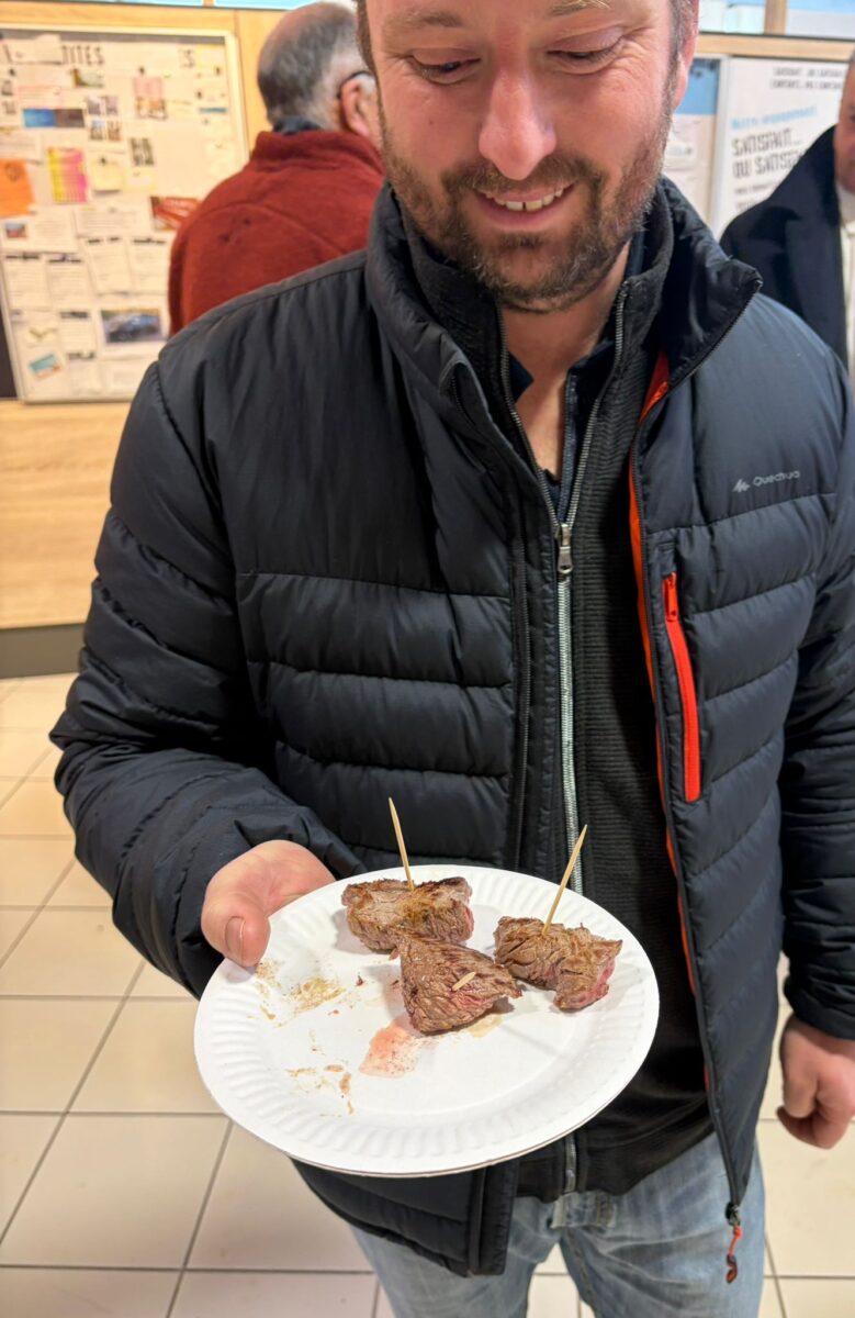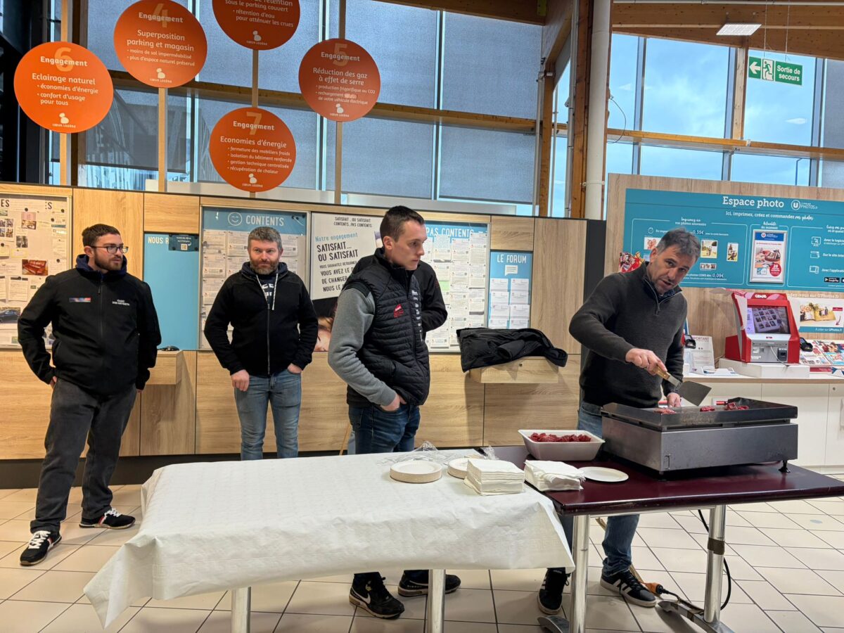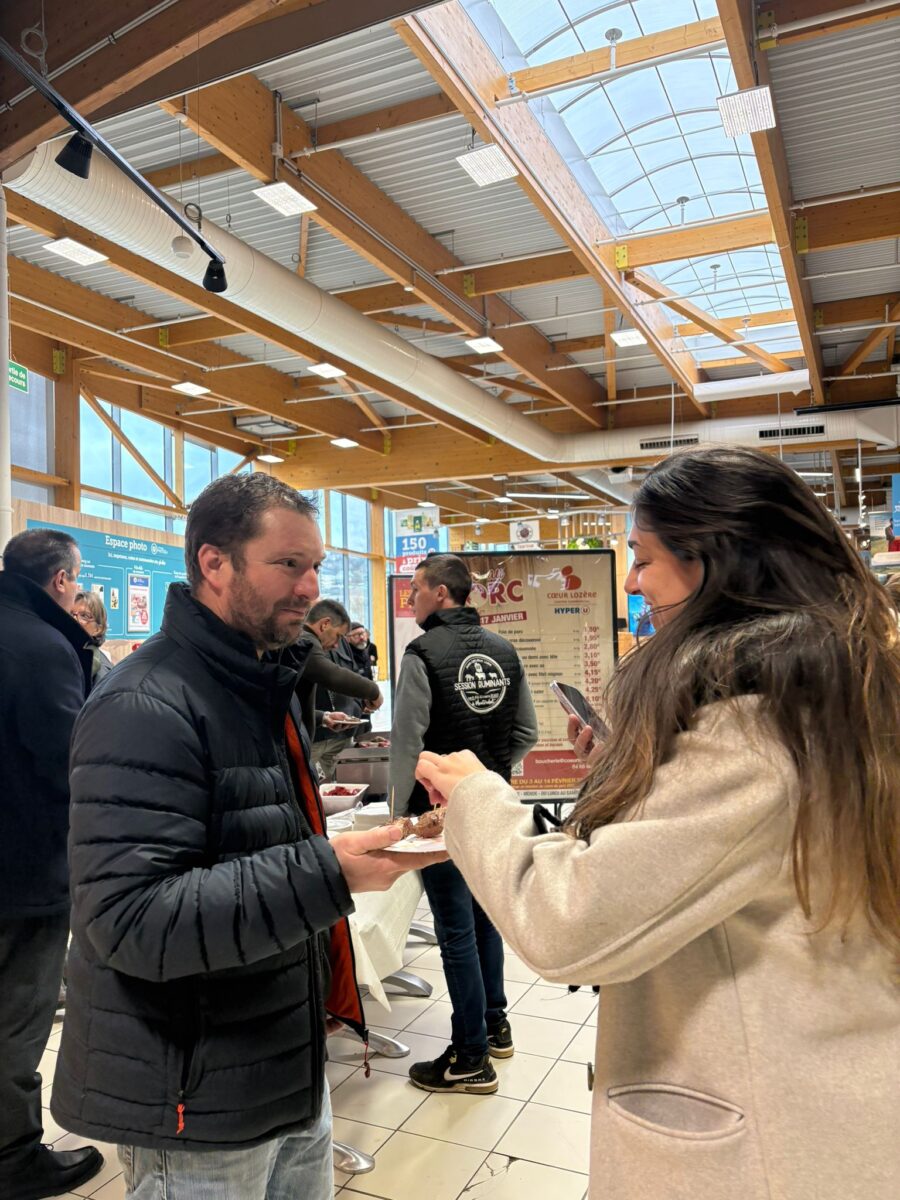 À l’initiative d’une action de terrain à Hyper U Cœur Lozère, sa collaboratrice était présente aux côtés des agriculteurs locaux pour aller à la rencontre des consommateurs. Cette rencontre avait un double objectif : faire découvrir la qualité de la production locale, notamment à travers une dégustation de viande issue du territoire, et échanger avec le public sur les conséquences potentielles de l’accord commercial entre l’Union européenne et les pays du Mercosur.